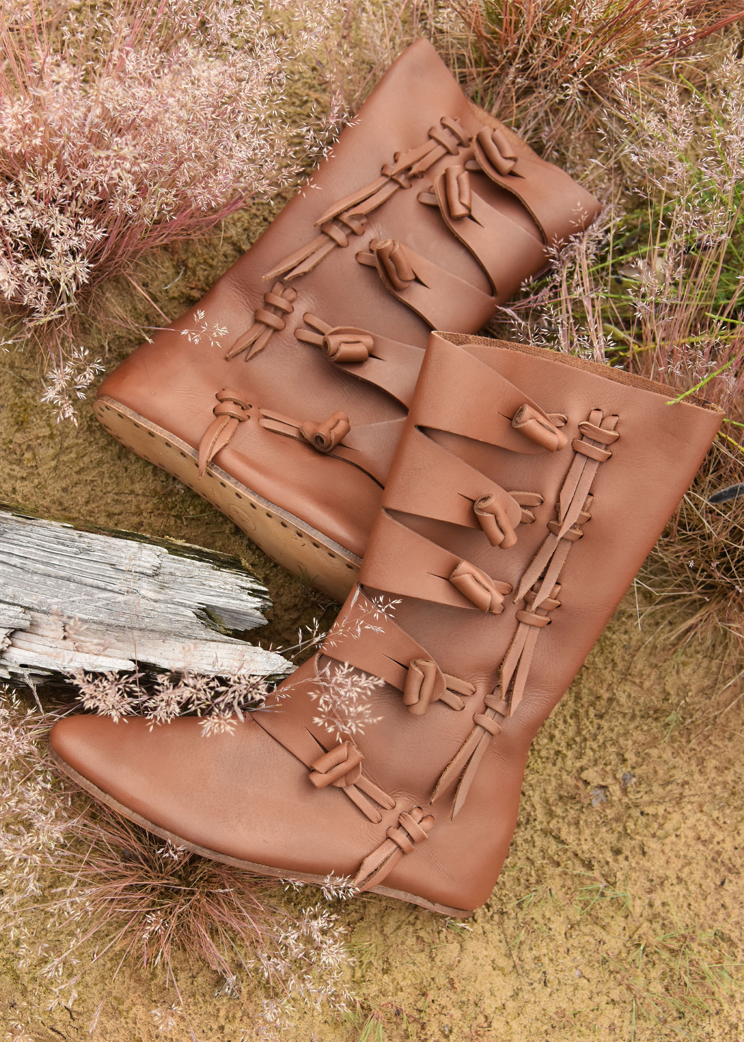 La conception des bottes à hauteur de mollet que nous proposons ici est basée sur des découvertes archéologiques de York (l’ancien Jorvik) et de Haithabu (Hedeby). Historiquement, ces bottes en cuir peuvent donc être attribuées aux IXe et Xe siècles, et peuvent certainement être appelées bottes vikings.