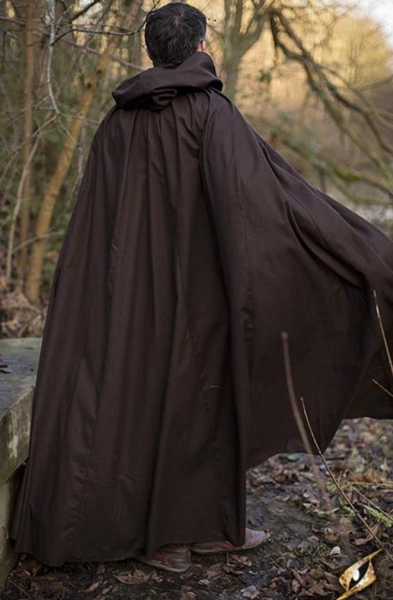 Cape Arthur RFB – Marron en coton longue et dotée d’une capuche et de fermetures à lanières en coton. Idéale pour GN.