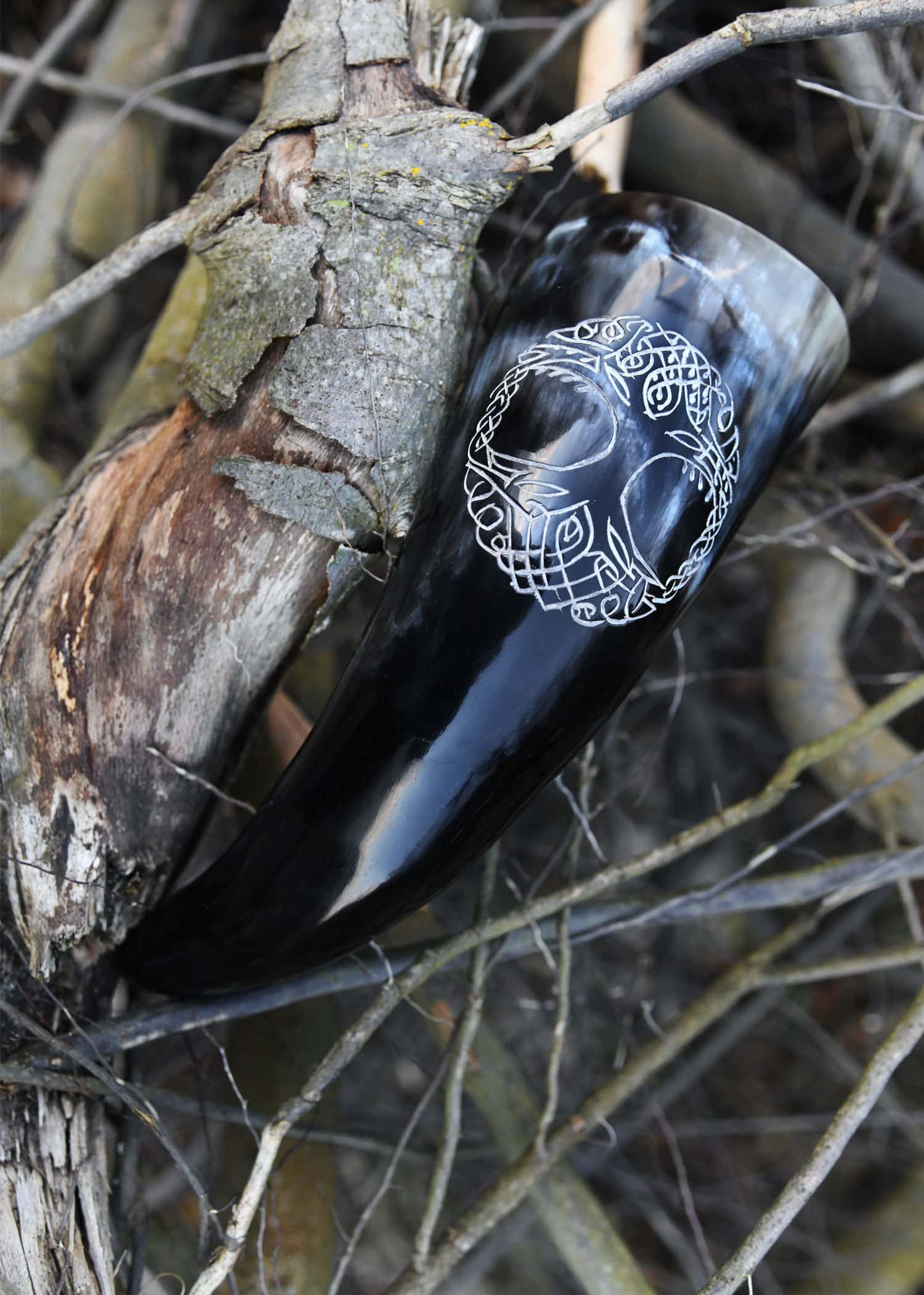 La corne à boire que nous vous proposons ici est fabriquée à la main à partir de corne de bovin, polie et ornée d’un motif gravé d’Yggdrasil, l’arbre du monde ou arbre de vie. Dans la mythologie nordique, le frêne à feuilles persistantes Yggdrasil est l’axe du monde qui relie les cieux, la terre et les enfers. En tant qu’incarnation de l’ensemble du cosmos ou de l’ensemble de la création, cet arbre sacré symbolise la connaissance, la vie, la décadence, le renouveau et, finalement, l’immortalité.