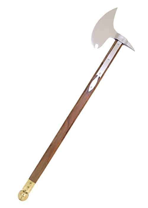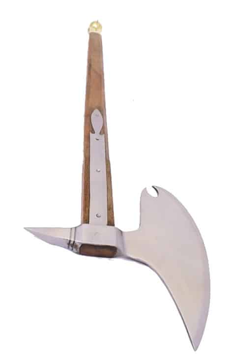 Les haches de combat et les masses ont été utilisés à la Renaissance. La pointe en pointe de la hache pourrait facilement percer une armure de plaques épaisse. Notre réplique est livrée avec un manche en bois décoré d’une griffe en laiton tenant une sphère. C’est une pièce très attrayante.