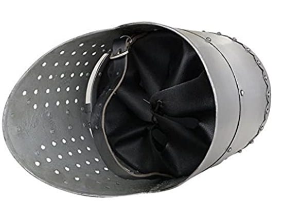 Heaume chevalier croisés du XIIIe siècle est un casque médiéval en acier 1.2 mm d’épaisseur équipé d’un renfort et d’une jugulaire en cuir. Taile: 58/60 cm