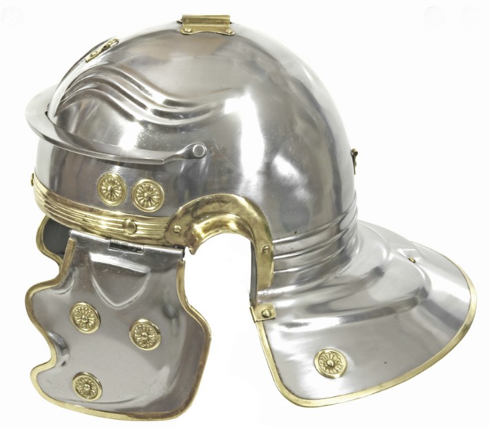 Réplique authentique d’un casque romain du 1er siècle inspiré d’une découverte d’Augsbourg, en Allemagne.
